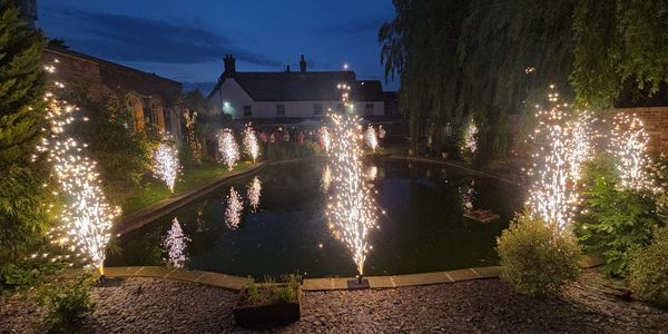 These outdoor fountains can help enhance, add sparkle and romantic lighting to any outdoor area from a beautiful garden, courtyard setting, entrance or exit with a wall of stunning lights.